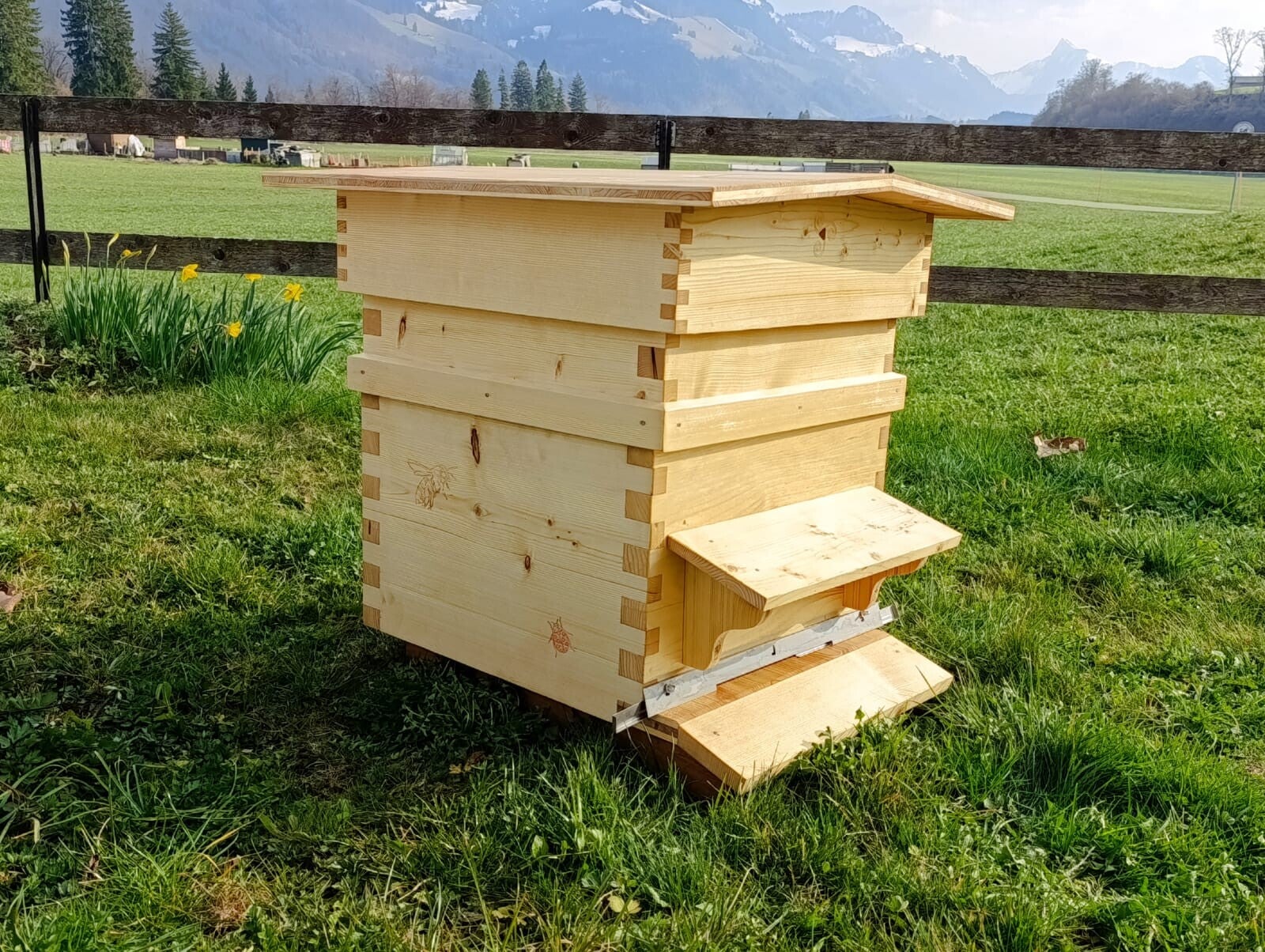 Bienenstöcke aus massivem Tannenholz, sorgfältig gefertigt, um den Bienenvölkern einen gesunden und nachhaltigen Lebensraum zu bieten.