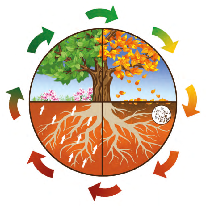 Si nous observons attentivement le circuit des nutriments, nous constatons que tous les déchets organiques sont finalement réintroduits dans la nature par le biais du sol.